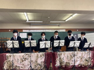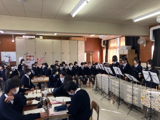芸術(音楽Ⅰ)の授業では2学期に練習したハンドベル(ミュージックベル)&トーンチャイムの演奏披露発表会が授業公開されました。