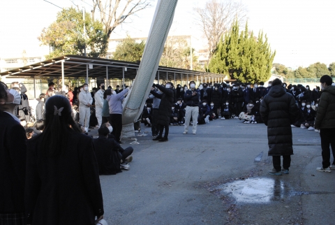 地震から火災が発生した想定で避難の訓練をしました。防災意識について教頭先生のお話を聞いた後、各学年で防災訓練を行いました。
