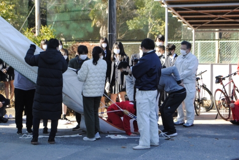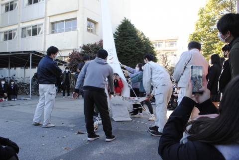 (1年生:防災ゲーム、2年生:降下訓練、3年生:消火訓練)
