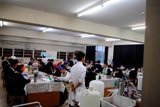 各班、餅田先生からの指導を真剣に聞いていました。