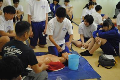 ただいま面談期間中ですが、1学年はこの時期に救命救急実習を行っております。