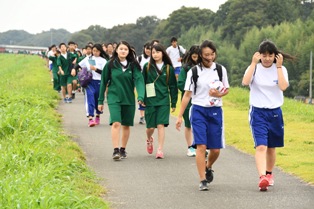 先週の金曜日、野田中央高校伝統行事でもある長距離徒歩を実施しました。40Km という距離を全校生徒で歩きました。今年度は途中で雨が降ったにもかかわらず、リタイア者が少なく、ほとんどの生徒が最後まで歩き切りました。