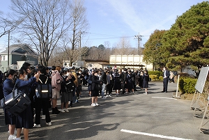 令和4年度の入学許可候補者の発表が3月7日(月)9時より本校で行われました。やや強い風が吹いていたものの好天に恵まれ、合格した受検生たちからは歓喜の声が上がっていました。尚、合格された方は来週3月17日(木)に入学許可候補者説明会があり、入学に関する説明や制服の採寸等が行われます。