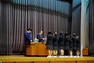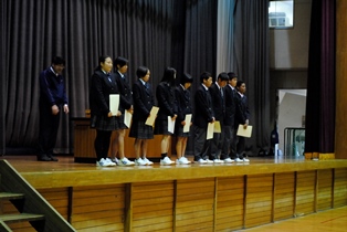 昨日は全校集会が行われ、生徒会役員の認証式や陸上部・水泳部・テニス部など大会で活躍した部、個人の表彰がありました。