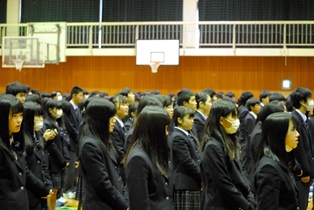 校長先生からは「1年を振り返り、今後のことを考えてみよう」や「命を大切にすること」という内容の話があり、生徒たちは真剣に聞いていました。