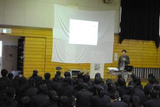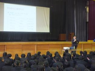 2年生は人権教育講話ということで、在日韓国人である金朋央さんにお話いただきました。金さんの実体験をいろいろ聞き、生徒たちの心には、「差別はいけない」という思いが心に刻まれたようです。