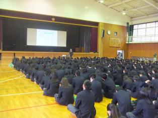 本日の総合的な学習の時間は1年生はデートDVについて2年生は人権教育について講話を聞きました。