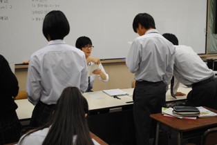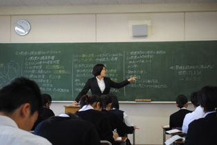 生徒たちとともに頑張る実習生の姿はとても輝いています。一生懸命生徒たちに学習内容を伝えようとする実習生。そして、それについて行こうと真剣に授業を受ける生徒たち。とても良い授業でした。残り少ない実習期間、頑張れ実習生!