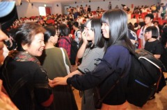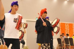 3日目の朝、退町式の会場では、民泊先のおじいおばあへのお礼の気持ちを込めて、桐谷健太さんの「海の声」を歌いました。お世話になったおじいおばあとの、お別れの時です。