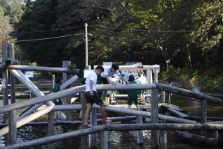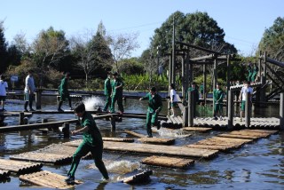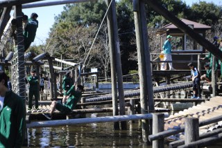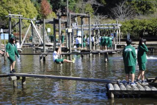 清水公園に着いてからアトラクションを楽しみました。人気だったのはやはりアスレチック!水上アスレチックでは、びしょ濡れになってしまう生徒もいました。
