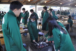 アトラクションを楽しんだ後はバーベキューです。自分たちで火を起こし、肉や野菜、そしてマシュマロなどを食べました