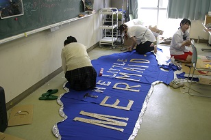 <会場の看板作成中>