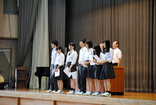 まず、表彰式があり、陸上部、演劇部、テニス部の表彰が行われました。