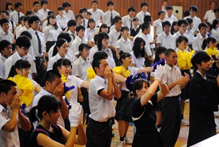 そして、8月にインターハイに出場する陸上部の3年生齋藤君と2年生堀田君の壮行会も開かれました。「全力で頑張ってきます!」という二人に対し、応援団からのエールが送られました。
