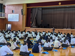 本日、3学年第二回推薦説明会がありました。進路指導部長から、学校推薦型選抜(指定校・公募制)・総合型選抜(AO入試)と一般受験について、説明がありました。指定校推薦、AO入試、一般受験のメリット・デメリット等について生徒たちは真剣な表情でメモを取りながら説明を聞きました。今後の