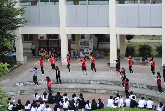 中庭に多くの生徒が集まる中、堂々としたダンスが披露されました。
