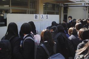 朝、登校してきて自分のクラスを確認する新入生。少し緊張しながらもワクワクした様子でした。