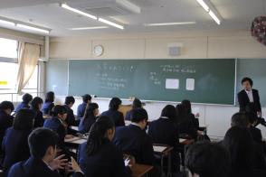 クラスで初めてのホームルーム。みんな真剣に担任の話に耳を傾けていました。