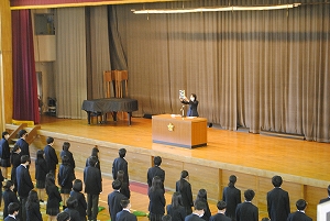 2学期の終業式が12月23日(木)に行われました。今回はごく短時間でしたが、2年ぶりに体育館に全校生徒を集めた式典として行うことができました。今後の状況はまだ不透明ですが、このような形が今後とも続けられるよう願っています。