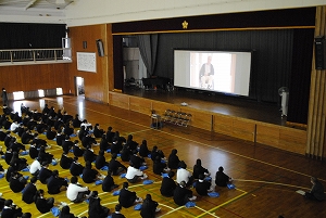 を視聴しました。これに先立ち、前の週には事前学習を行い、視聴終了後には教室に戻って感想文を書き、障がい者問題について深く考える機会としました。