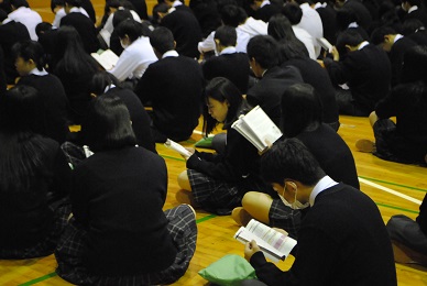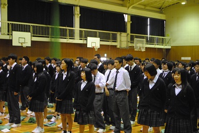 そして添乗員の方や保健の先生から旅行に関する注意事項などが話され、生徒たちはしおりで確認をしました。