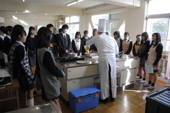 生徒たちはいろいろな分野に別れ、それぞれ話を聞きました。
