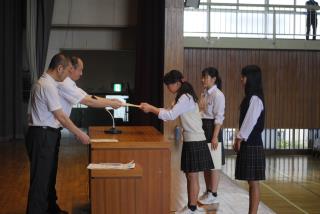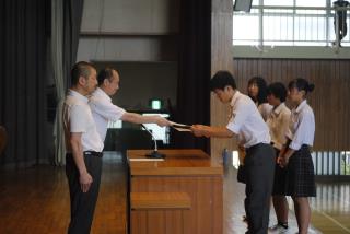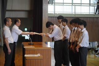 まずバドミントン部、硬式テニス部、陸上競技部の表彰がありました。