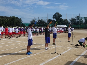 感染症対策のため、個人種目を行わず、団体競技のみにするなど規模を縮小し、競技は午前中の半日で行われました。
