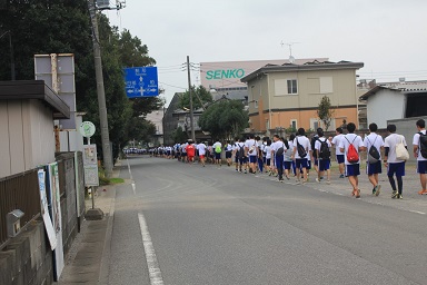さて、この行事は40kmを一日かけて歩く行事ですが、和気あいあいと、はたまた体力のある生徒は走ったりと、自分に合ったペースで歩けます。