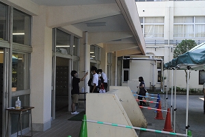 第1回学校説明会が8月20日(木)に行われました。今回は感染症対策のため、例年のような体育館での一斉開催ではなく、6つの教室に最大20人ずつ、さらに30分ずつの時間差もつけて約1000人の中学生やその保護者の方々に学校紹介ビデオの視聴や部活動見学等を行なっていただきました。第2回は11月に行われる予定です。詳細は決まり次第本校HPにてお知らせします。