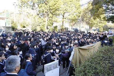 9時の発表の瞬間には多くの中学生が集まっていました。