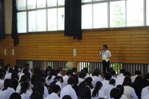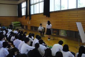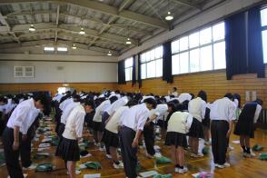 多くの生徒が進学や就職試験を受ける際、面接を実施するため、真剣に話を聞いていました。全員でお辞儀の仕方の指導も受けました。