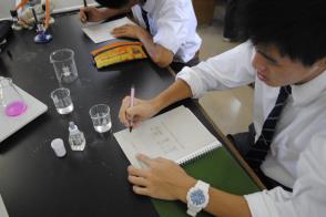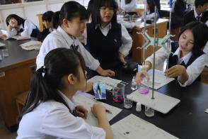 3年文系コースの「理科研究」という授業で実験が行われていました。