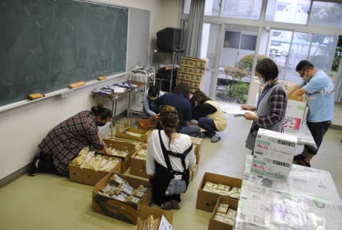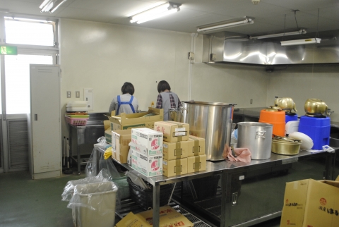 役員の方々も明日振る舞う豚汁の下準備のために来校されました。