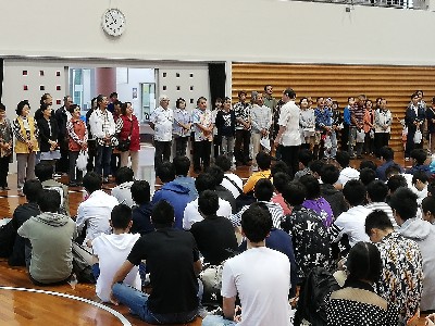 修学旅行もいよいよ3日目、民泊の退町式から始まりました。あいさつの後