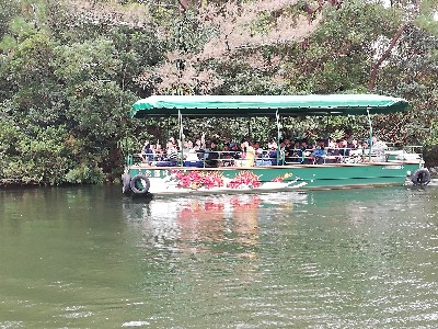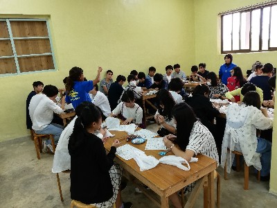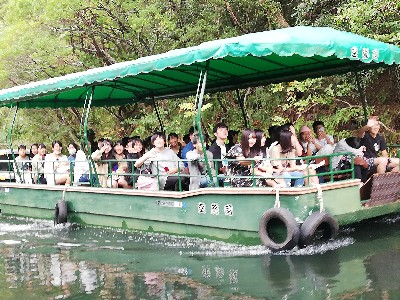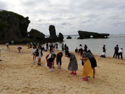 美ら海水族館のあとは各グループごとの体験学習でしたが、残念ながら天気の影響でマリン体験は中止に…。コースが変更され船に乗ったりマリンクラフトを体験しました。他のコースほ予定通りでした。