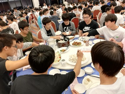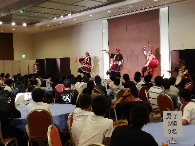 体験のあとはホテルへ。食事はすごいボリュームにみんな満足。食事のあとはエイサーショーを見ました。