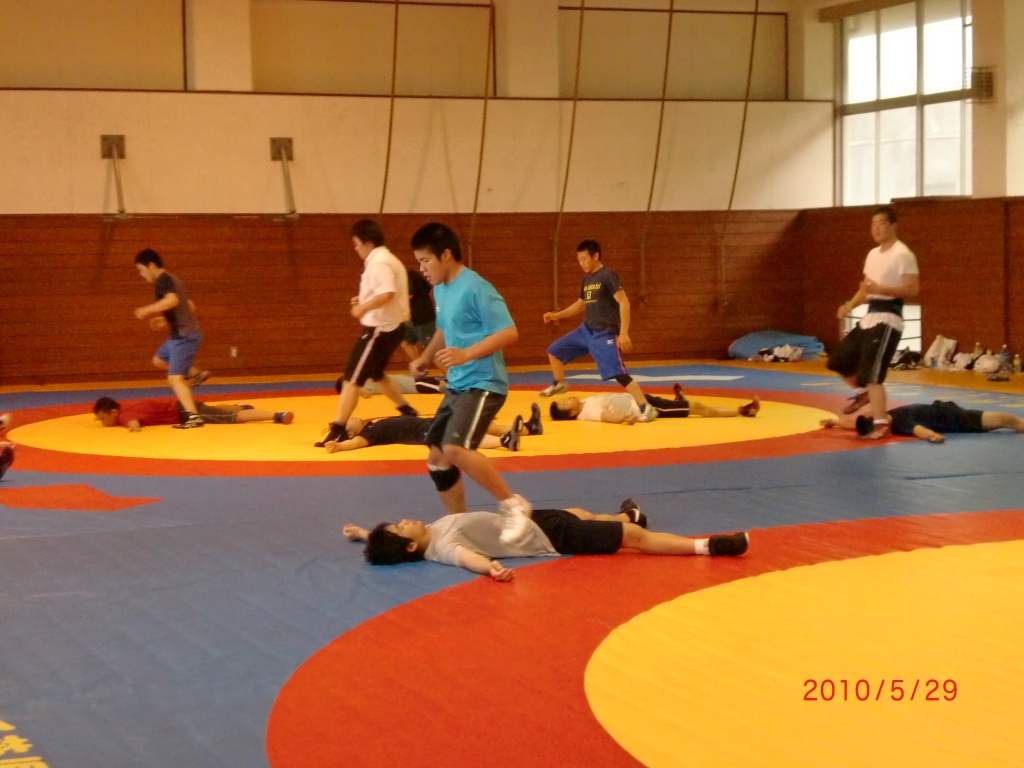 29日・30日の土日に合宿をしました。会場は四街道高校です。マットが2面もある素敵な会場です。2日目には千葉県出身の大学生も胸を貸してくれ、思いっきり練習してきました。 エースの亀井! 鈴木もやりました。 みんな頑張ってます。 でも食事が一番の楽しみ(^ー^)来週の土日は関東大会(栃木県)です。頑張ります!