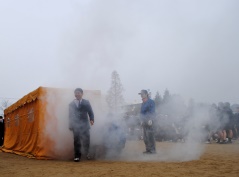 地震の後に火災が発生した想定で避難訓練を行いました。