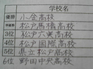 5位決定戦(2回戦):県立松戸1-3で負けました。6位となり、県大会出場を逃がしました。