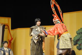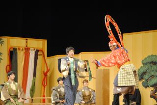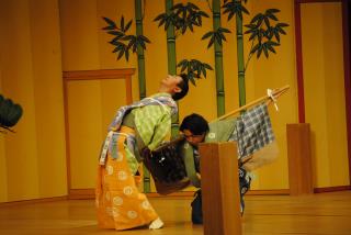 「棒縛(ぼうしばり)」では太朗冠者と次郎冠者がなんとかしてお酒を飲む様子に笑いが巻き起こりました。