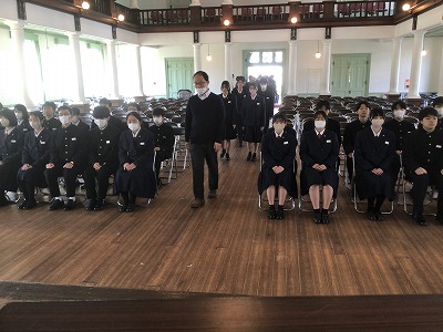 今年度は、卒業までに1週間あるため、ゆとりがあります。仲間や後輩、そして先生方にたくさんの「ありがとう」を伝えて、それぞれの進路へと巣立っていってほしいと思います。