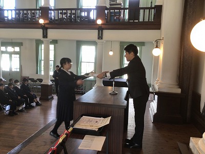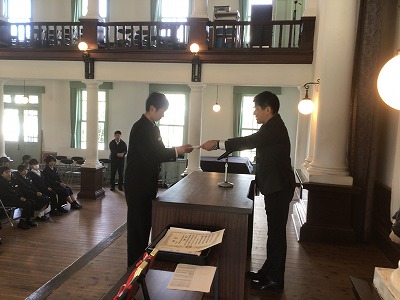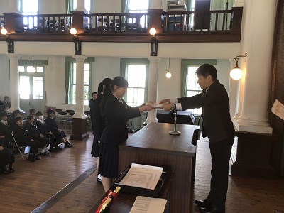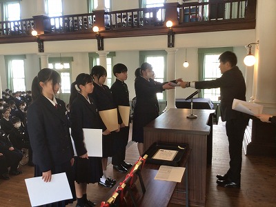 3月10日(火)、午後から同窓会入会式・表彰伝達・卒業記念品贈呈式が行われました。