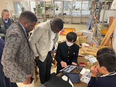 今日はモザンビークのマプト教育大学の先生方が、教育視察に来られました。愛媛大学とマプト教育大学は、昨年度、大学間学術交流協定を締結しました。その流れもあり、今回の視察が実現したそうです。マプト教育大学では、STEAM教育に力を入れているそうで、本校の理科・数学・技術の授業参観を希望されていました。しかし、せっかく来校していただいたので、それ以外の授業ものぞいてもらったそうです。