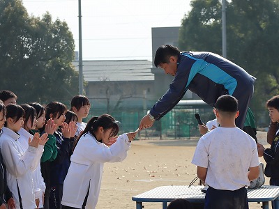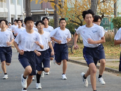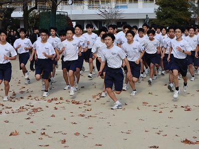 12月8日(月)、午前中に校内持久走大会が実施されました。これまで生徒たちは、朝練習、体育の授業での練習、放課後練習に一生懸命取り組んできました。