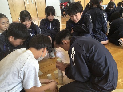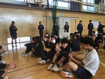 12月10日(水)、4校時に1年生が学年レクを行っていました。大洲宿泊研修の時に計画していたものの、時間が押してしてしまい、消化不良で残ったレクがありました。そこで、生徒たちから「2学期のうちに、ぜひやらせてください!」という申し出があったため、今日実施することになりました。