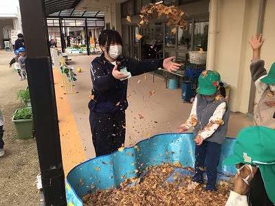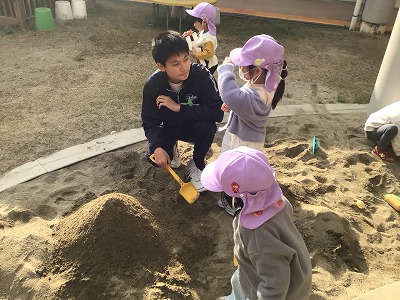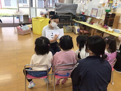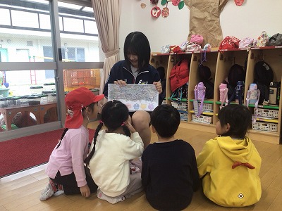 自分が描いた絵本を持参して、読む速さや声の調子を工夫して読み聞かせる姿、落ち葉や砂場や遊具など、幼稚園にある環境を活用して一緒に遊ぶ姿、さらには、幼児の反応を見て遊び方に工夫を凝らす姿が見られました。
