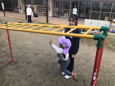 幼児と触れ合う経験が少なく、最初は遠慮がちだったり、ぎこちなかったりする生徒もいましたが、時間が経つにつれて、よりよい関わりができるようになっていきました。