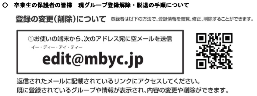 卒業生保護者の皆様は、旧グループの登録解除をお願いします。
