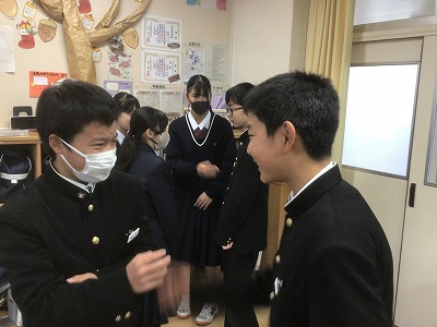 計画→生徒委員会でのプレゼン→修正→先方への連絡・調整→準備を経て、今日の活動があります。自分たちで企画・実践することの難しさと喜びをたくさん味わうことができたと思います。また、この活動を通して、異学年の交流も深まったことと思います。